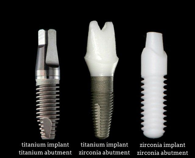 Oltre alle corone noi usiamo anche l'impianto (vite) in Zirconia, per ridurre a zero il rischio di correnti in bocca.